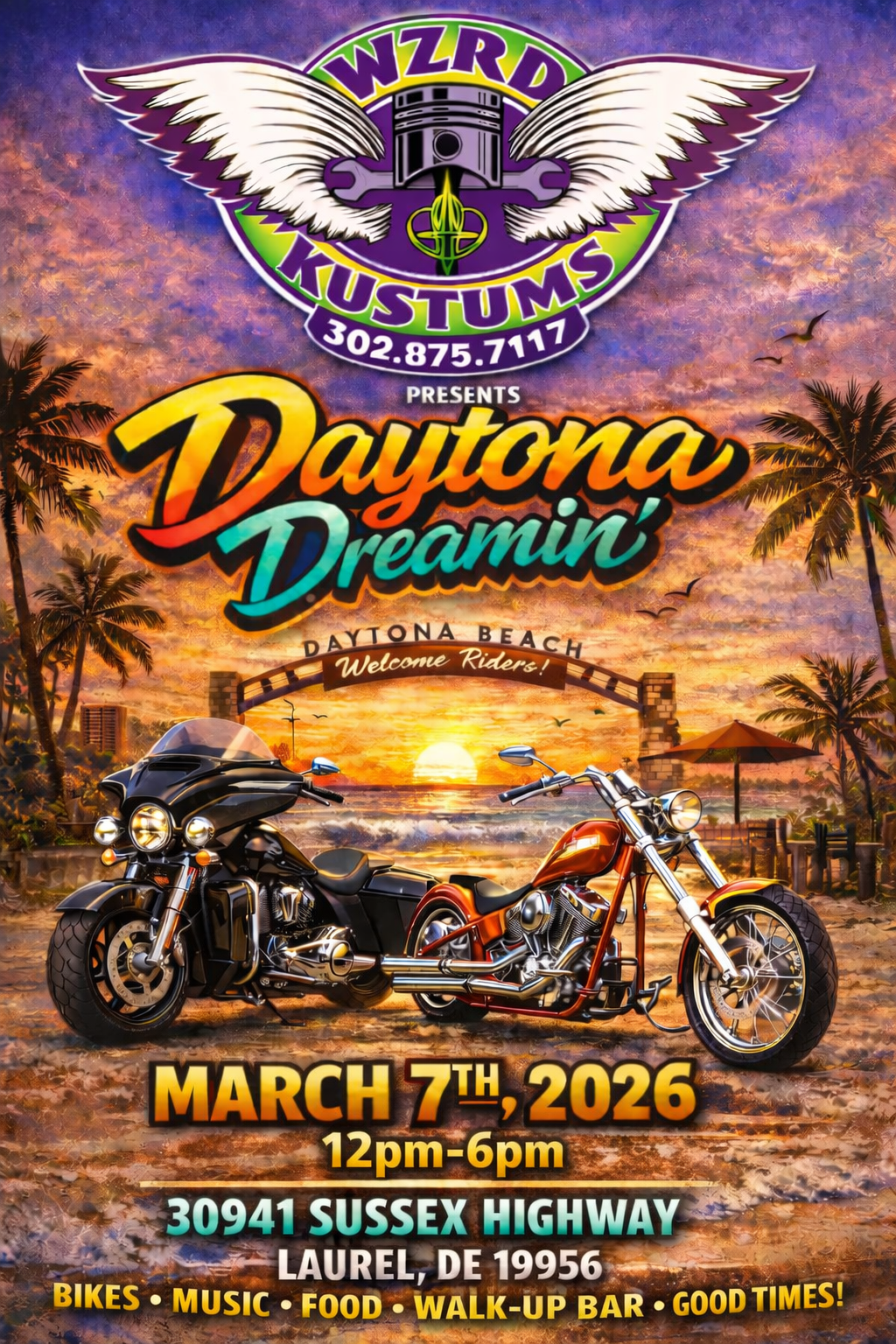 For all of us who can’t make it to Daytona for the 85th bikefest, Wzrd Kustums presents our Daytona party here in our hometown.